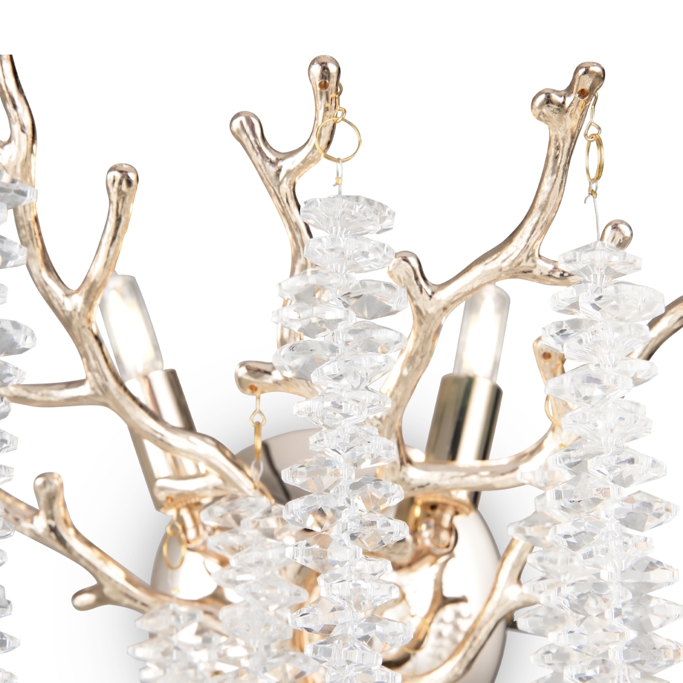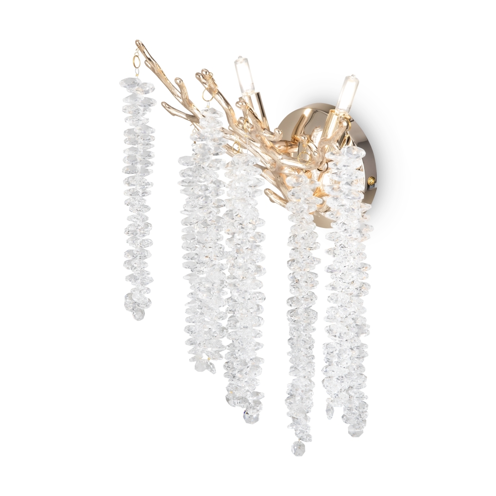 Материалы арматуры —металл, цвет — золото. Хрустальные декоративные элементы напоминают капельки - создают глубокие переливы света. Дизайн в трендовой растительной тематике. Источник света — лампа с цоколем G9 и с поворотной функцией.