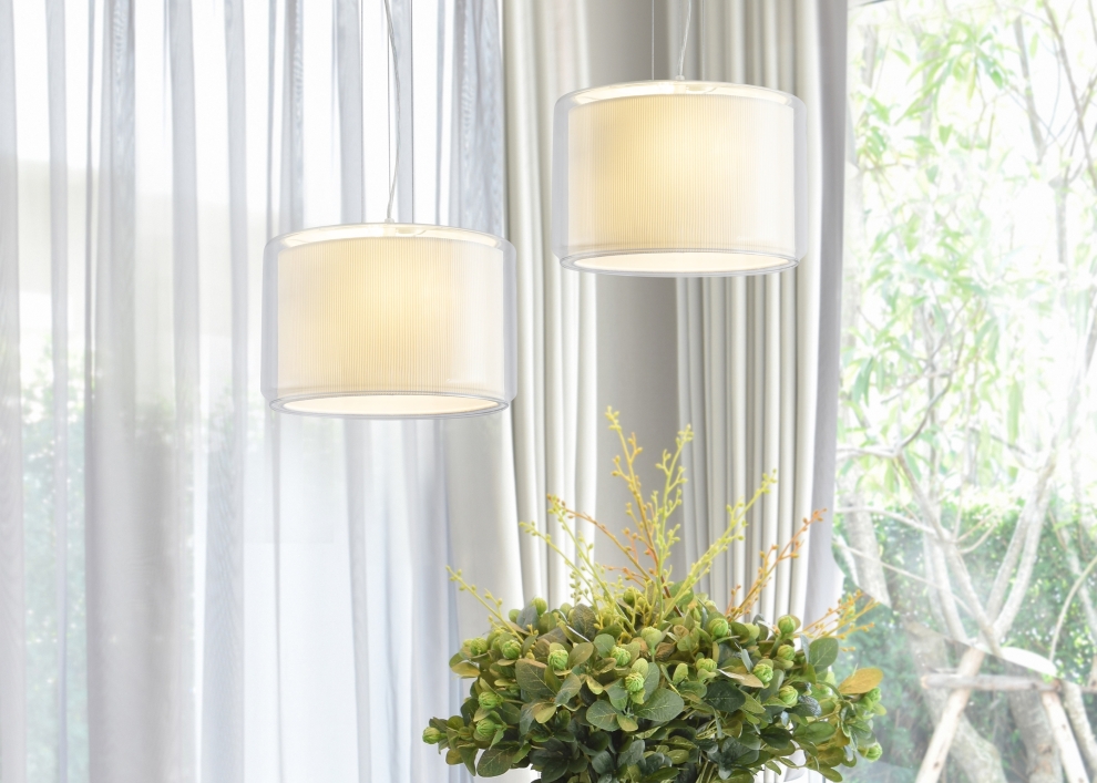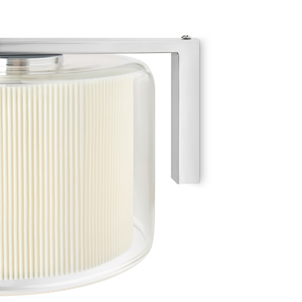 Сочетание стекла и тканевой плиссировки для мягкого рассеянного света. Лампы E27 (в комлекте). Особенность плафонов - их многослойность. В серии представлены подвесной, потолочные и настенный светильники.