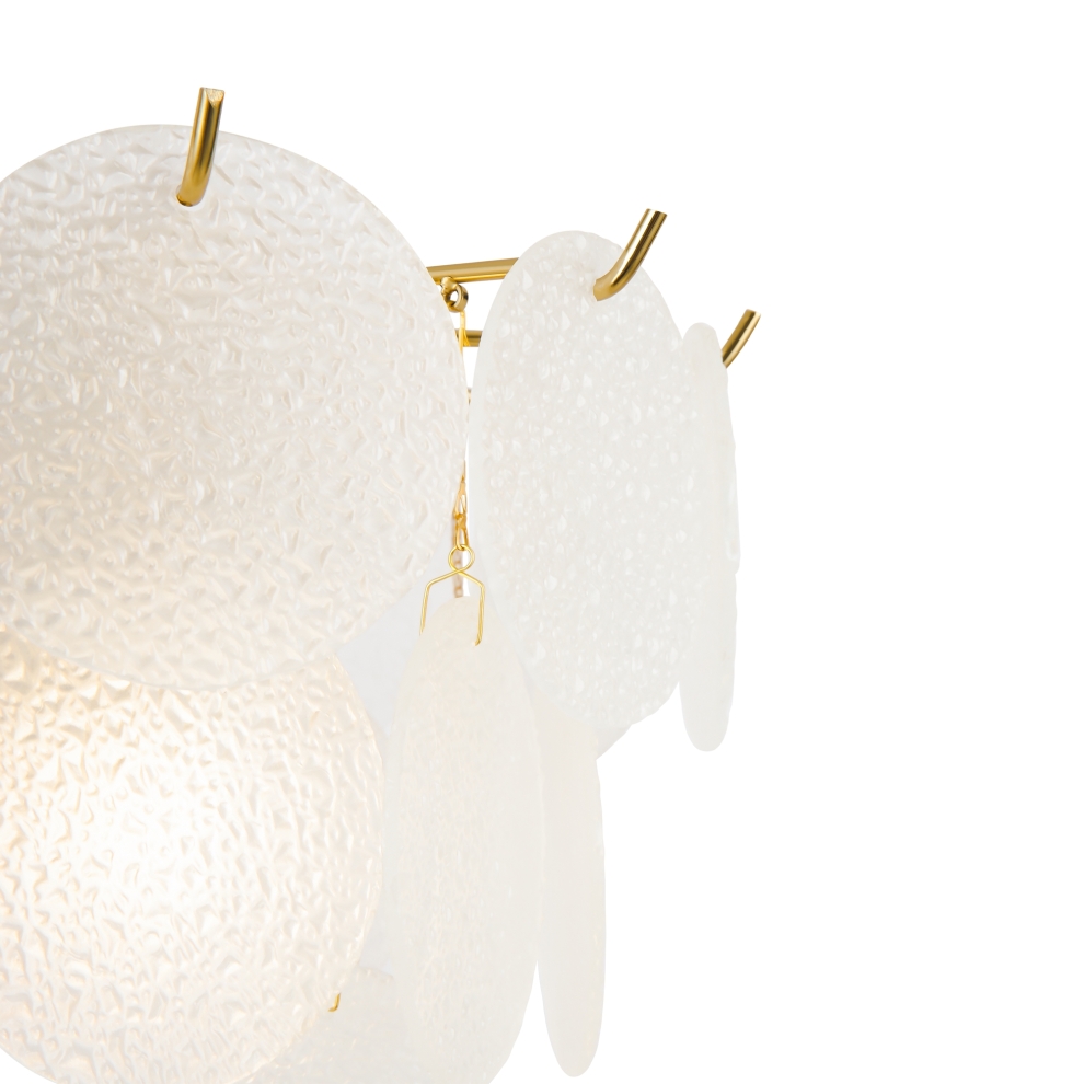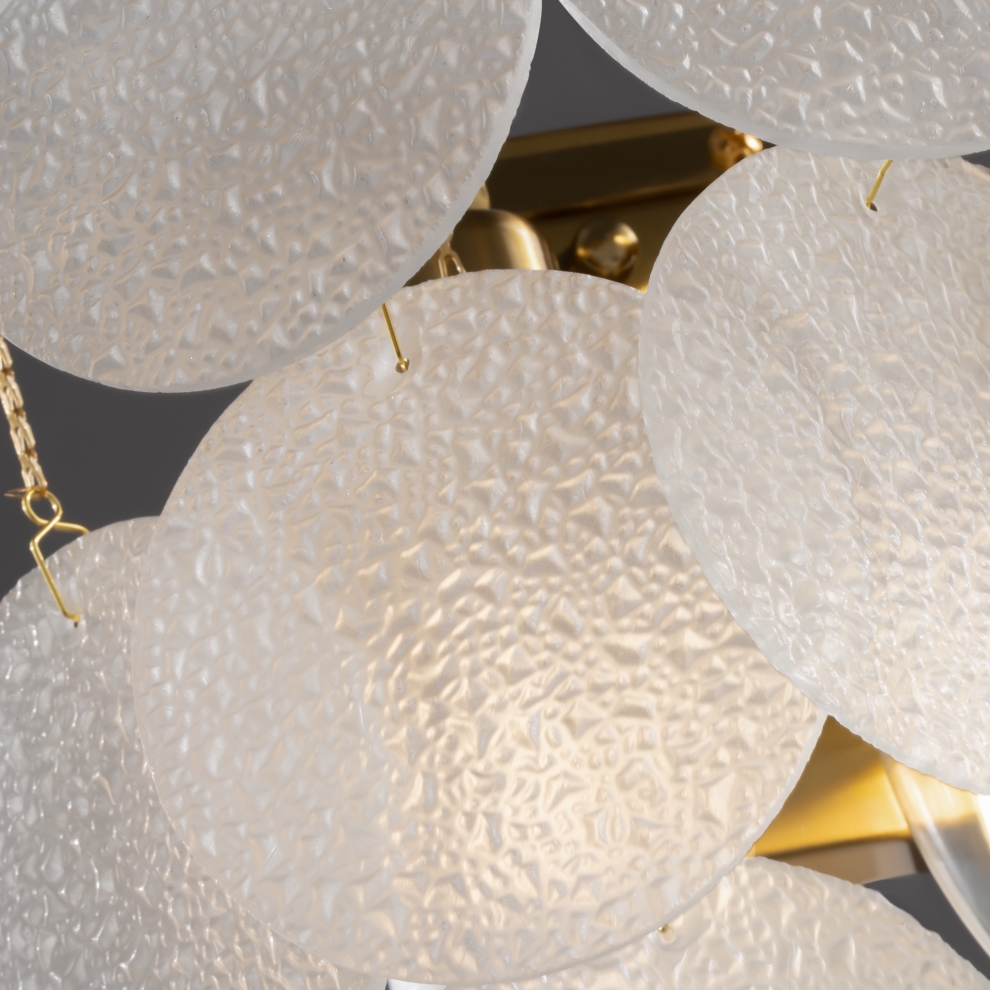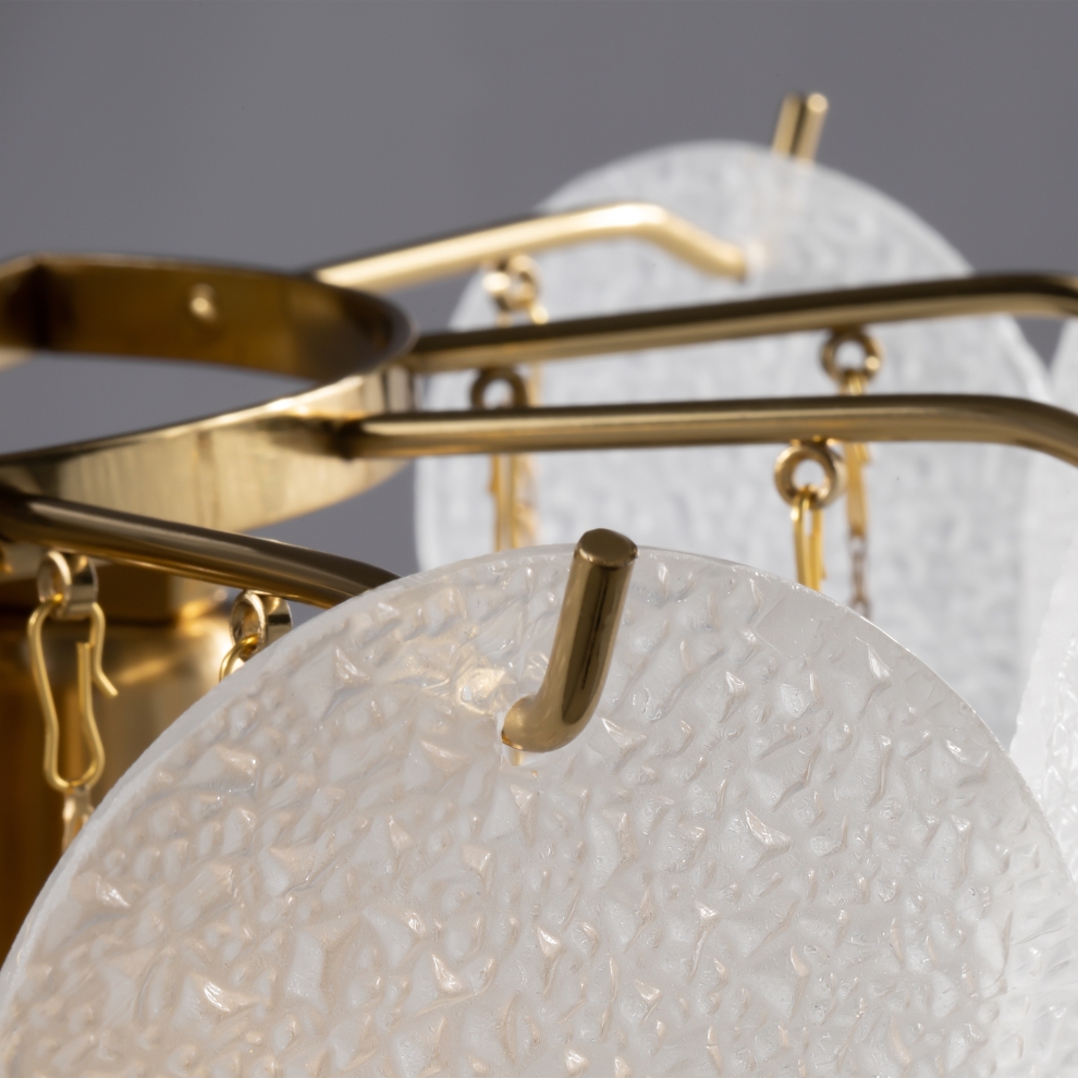 Магия фактур запечатлена в дизайне серии Porto. Изюминка модели – декор в виде тонких округлых пластин с эффектом замороженного стекла. Популярная серия имеет два цветовых решения: декор цвета рисовых полей, а также комбинация фактурного стекла и металлических пластин в цвете латунь. Арматура светильников в серии представлена в двух оттенках – латунь и никель. Тонко очерченные рожки и воздушный стеклянный декор создают трендовый эффект парения. Светильник словно замирает в воздухе, образуя своеобразную визуальную иллюзию. Модель предназначена для комнат, оформленных в стиле ар-деко, модерн, неоклассика. Серия включает люстры различного диаметра на 6 и 8 ламп.