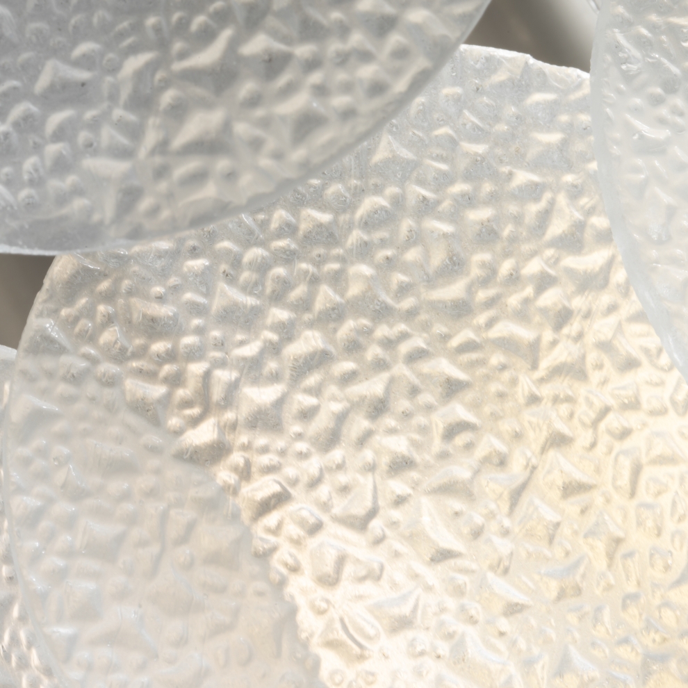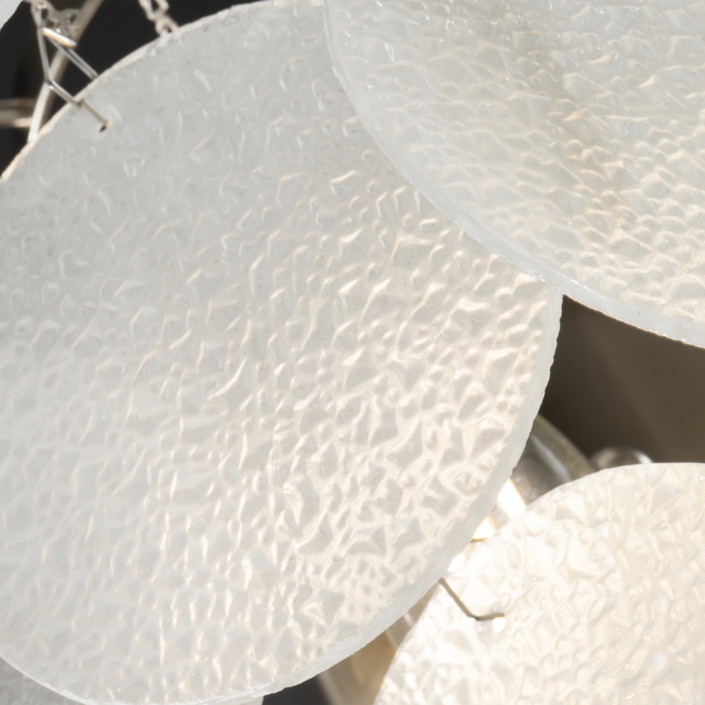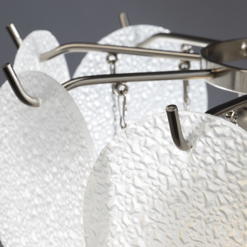 Магия фактур запечатлена в дизайне серии Porto. Изюминка модели – декор в виде тонких округлых пластин с эффектом замороженного стекла. Популярная серия имеет два цветовых решения: декор цвета рисовых полей, а также комбинация фактурного стекла и металлических пластин в цвете латунь. Арматура светильников в серии представлена в двух оттенках – латунь и никель. Тонко очерченные рожки и воздушный стеклянный декор создают трендовый эффект парения. Светильник словно замирает в воздухе, образуя своеобразную визуальную иллюзию. Модель предназначена для комнат, оформленных в стиле ар-деко, модерн, неоклассика. Серия включает люстры различного диаметра на 6 и 8 ламп.