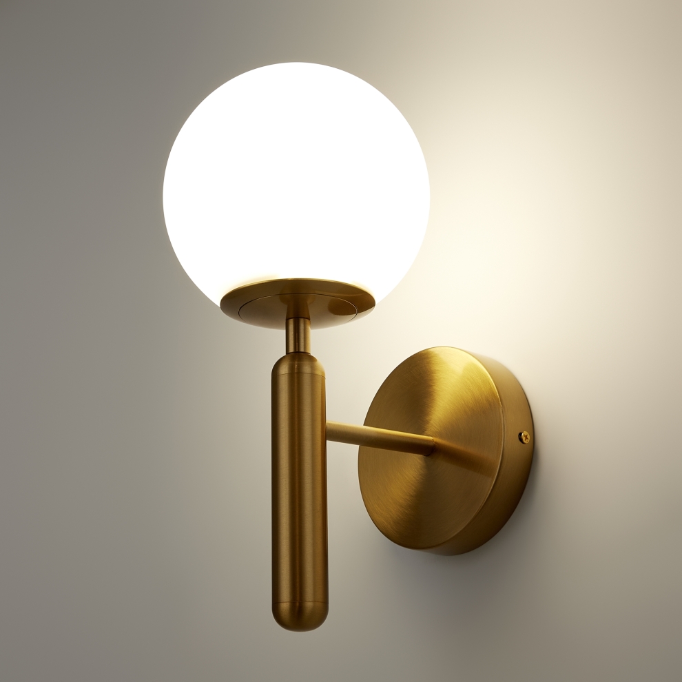 Металлическая арматура оттенка латуни. Плафоны-сферы в двух вариантах: матовое белое стекло и прозрачное с рельефной фактурой. Широкий ассортимент для зональной подсветки. В качестве источника света используется лампа с цоколем Е14.
