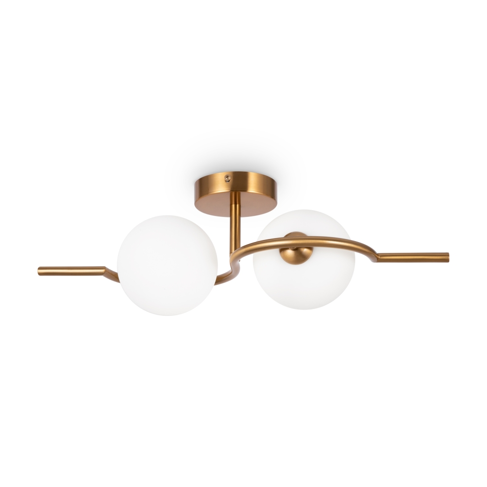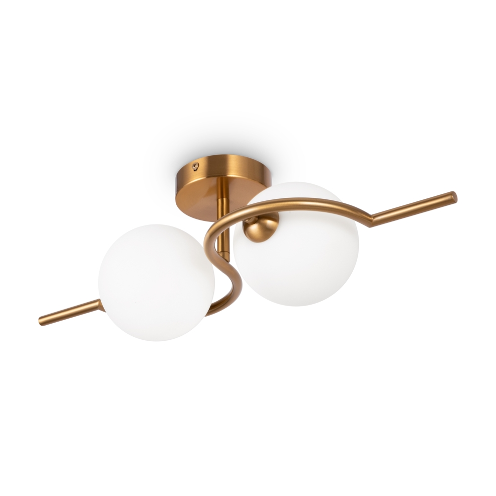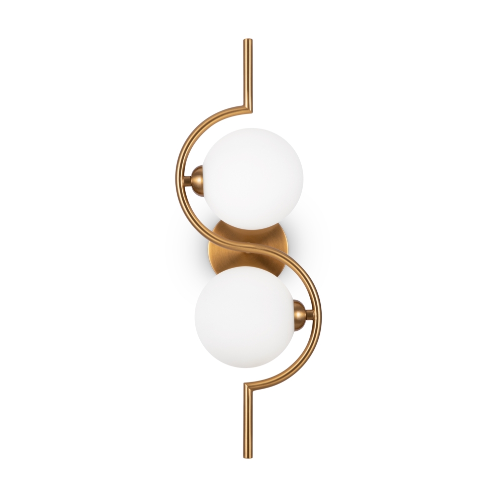 Металлическая арматура, цвет – латунь. Плафоны-сферы из белого матового стекла для мягкого света. Дизайн наполнен метафорическим смыслом плавных контуров символики инь и ян. Источник света – лампа с цоколем G9. Регулируемая высота подвесного светильника.