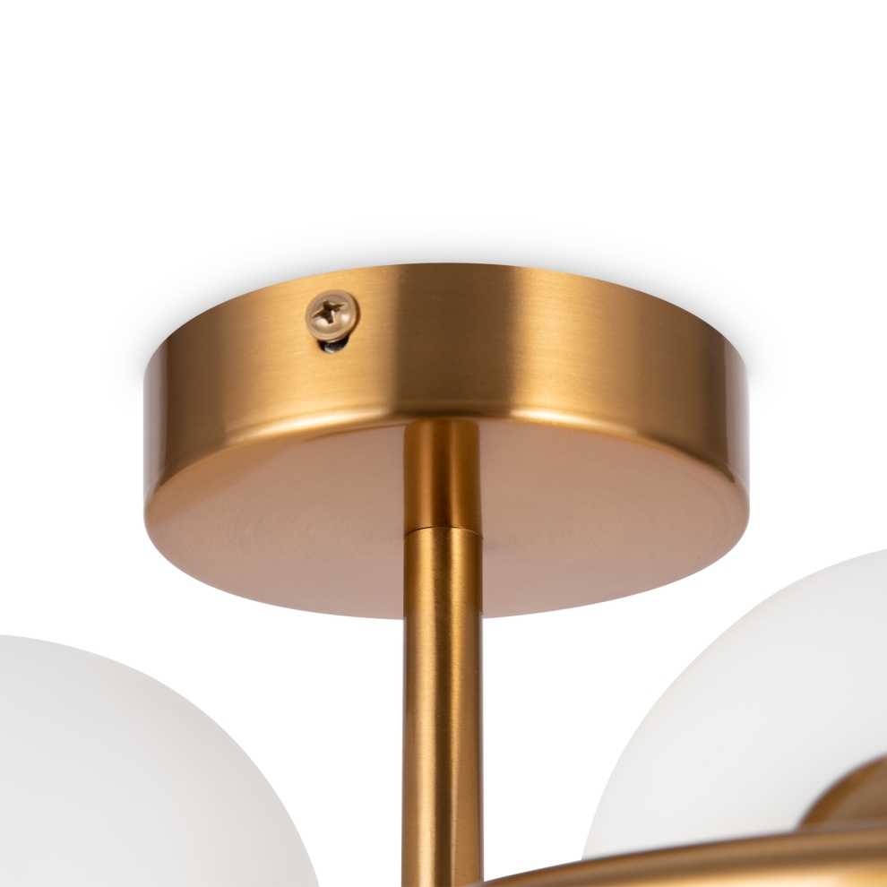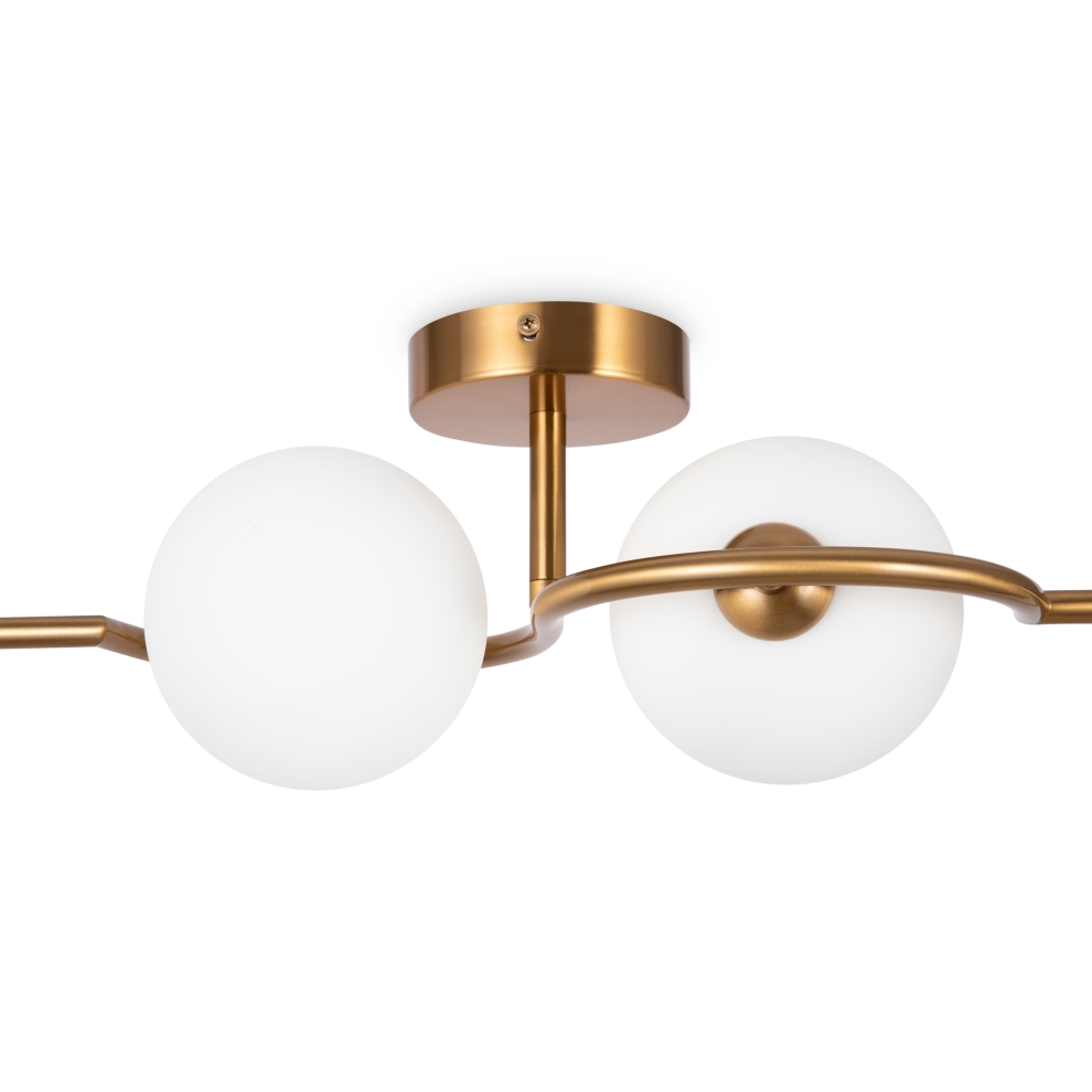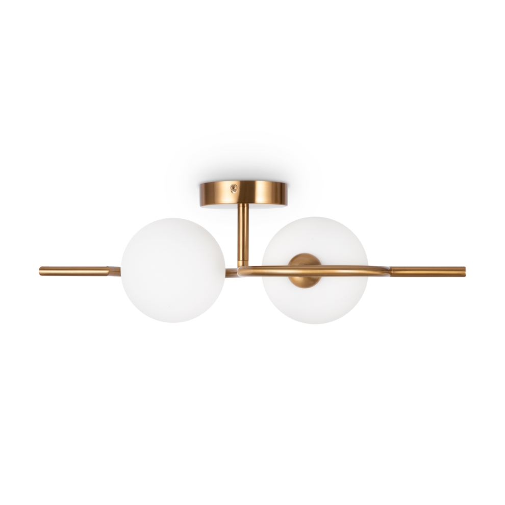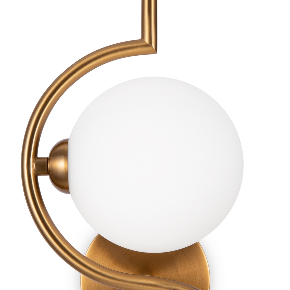Металлическая арматура, цвет – латунь. Плафоны-сферы из белого матового стекла для мягкого света. Дизайн наполнен метафорическим смыслом плавных контуров символики инь и ян. Источник света – лампа с цоколем G9. Регулируемая высота подвесного светильника.