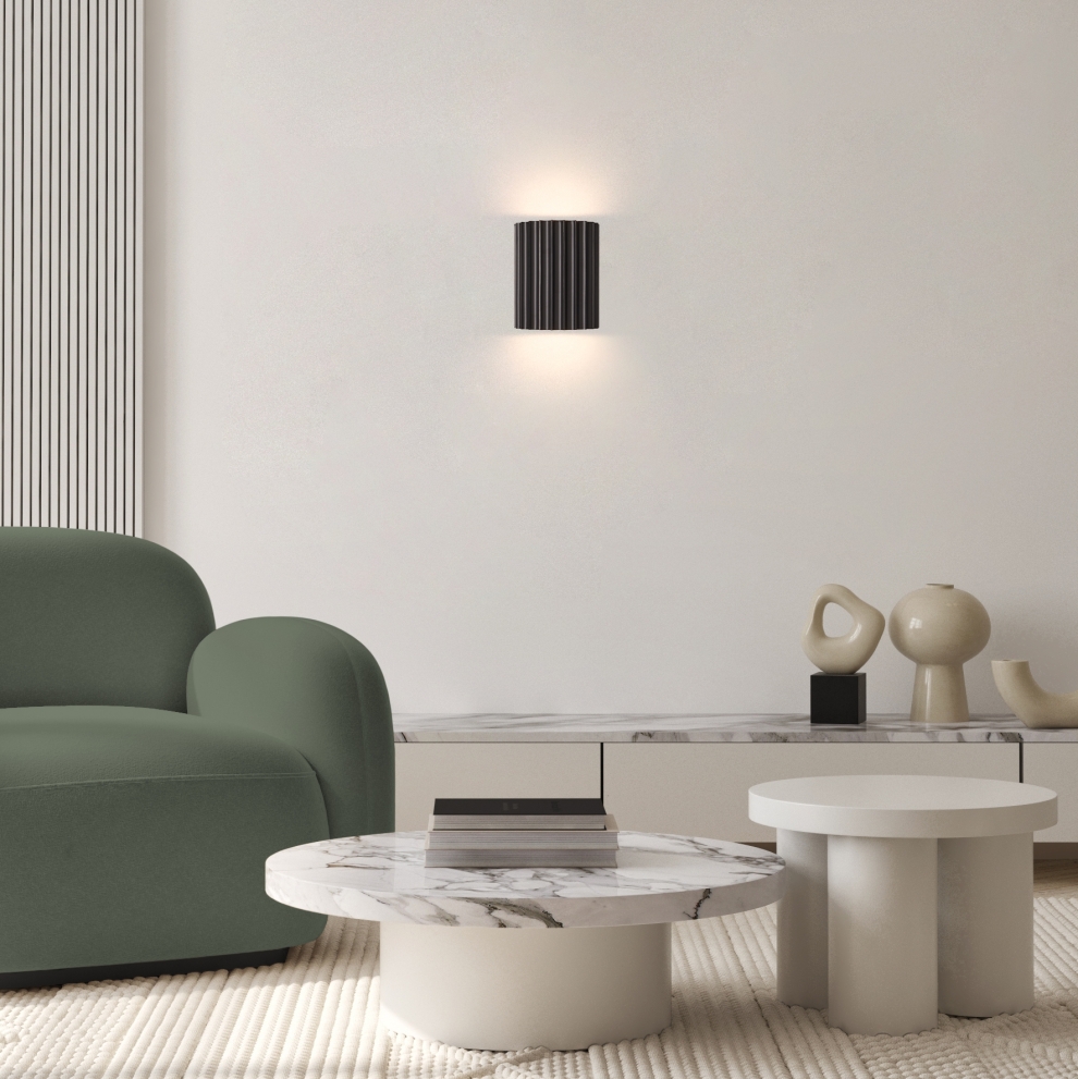 Арматура ресина и металл. Цвета арматуры матовый белый, серый и матовый черный. Глубокий рельеф. Цвета черный, серый, белый. LED источник светит вверх и вниз. Регулируемая цветовая температура - 3000К-4000К-6000К.