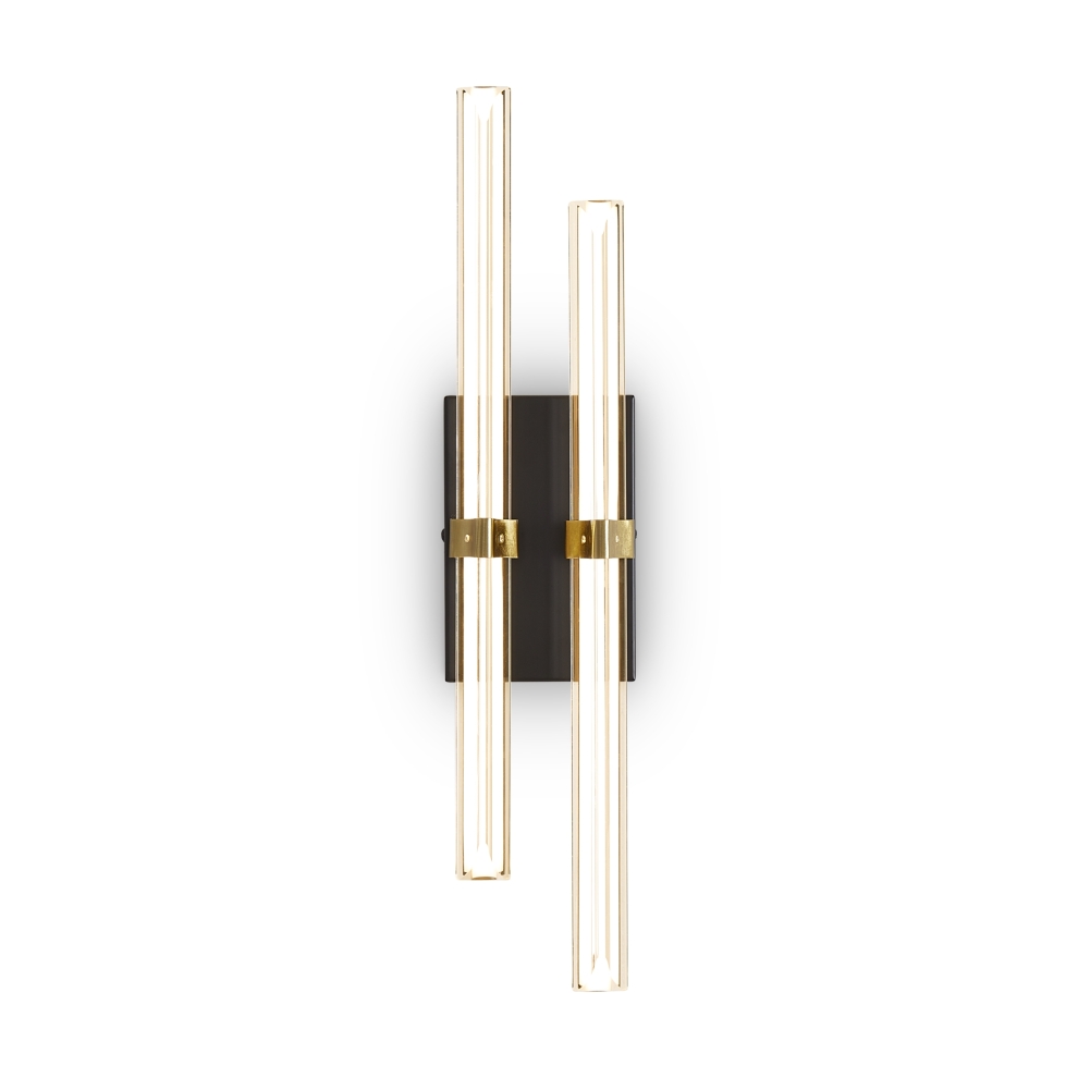Материал арматуры — металл, цвет — черный и латунь. Все модели серии Brilliance оснащены LED-источником света. Цветовая температура 2700К. Прозрачные стеклянные рассеиватели. Регулируемая высота. Особенностью серии являются поворотные LED-трубки, позволяющие менять направление светового потока и создавать различные световые композиции.