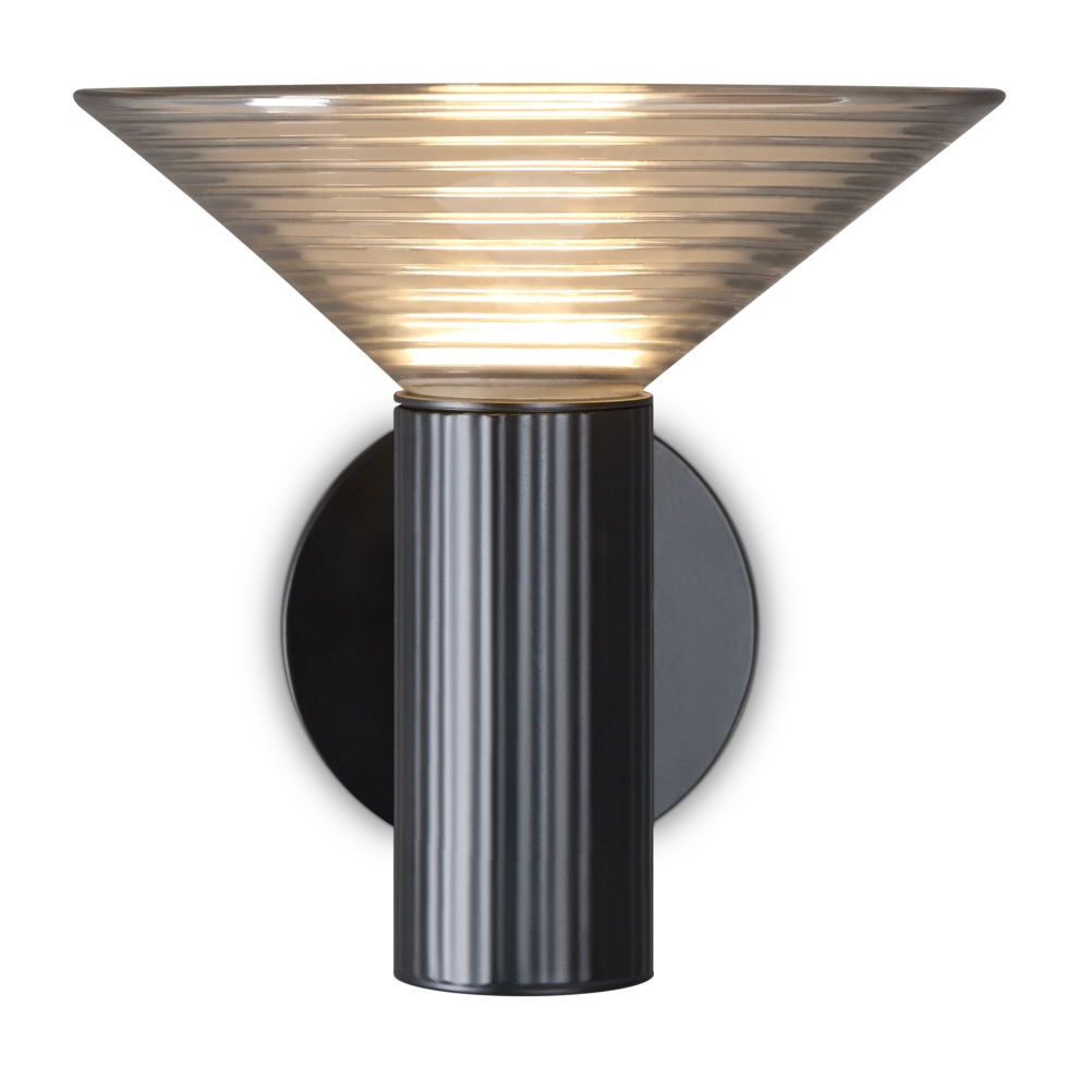 Гальванизированные рельефные плафоны в минималистичном стиле, выполнены из стекла с дымчатым эффектом. Арматура — граненый металл черного цвета. Оснащены LED источниками света мощностью 6 Вт с цветовой температурой 2800K, создающими теплое, уютное освещение. Серия включает бра и одинарный подвесной светильник. Универсальны для современных интерьеров, стремящихся к простоте и функциональности.