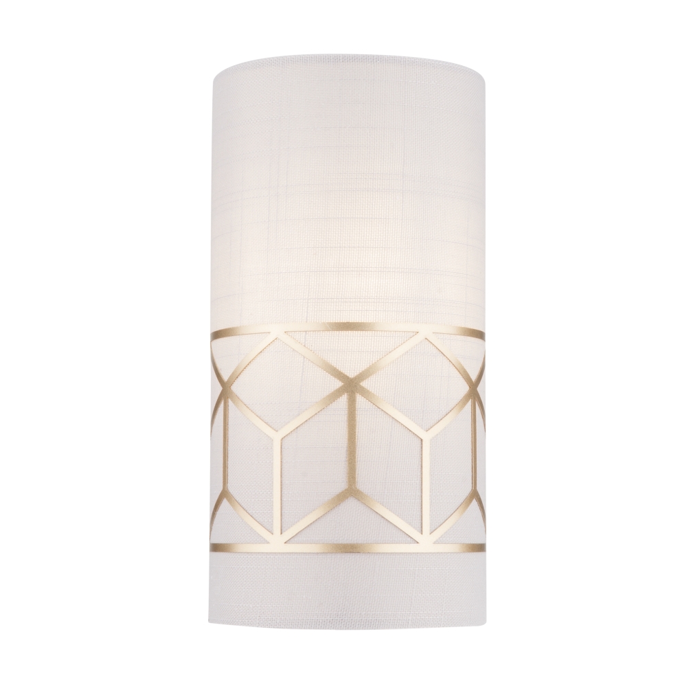 Арматура из металла золотого цвета. Абажур – натуральный лен на ПВХ. Металли ческий орнамент опоясывает абажур. Льняной рассеиватель.