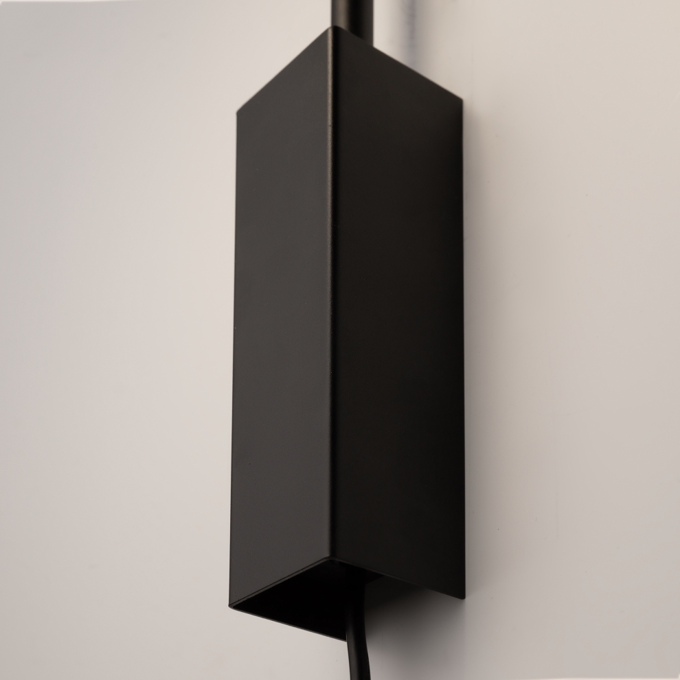 Арматура и плафоны из металла, цвет – черный. Оригинальная форма плафона с плавным контуром. Источники света скрыты под акриловым рассеивателем.