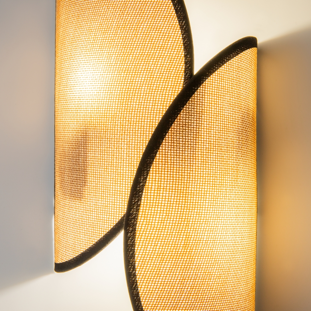 Черная металлическая арматура, коричневые плафоны из натуральной рогожки с черной тканевой окантовкой. Источник света: цоколь G9. Сменные лампы не входят в комплект. Регулируемая высота светильников с помощью разборных штанг. Плафоны пропускают значительный световой поток, он также попадает в пространство через отверстия снизу. Ассиметричная форма для разных стилей интерьеров. Левостороннее и правостороннее бра компонуется в интересные композиции.