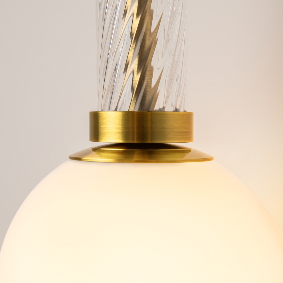 Серия в тренде massive light - массивная, но при этом изящная арматура. Металлическая арматура в цвете латуни дополняется стеклянными рельефными элементами. Три цвета стекла: прозрачный, янтарный и дымчатый с зеркальным эффектом. Плафоны из стекла белого цвета. Цоколь G9. Серию составляют универсальные подвесные светильники в двух цветах с регулируемой длиной провода, эффектная люстра и лаконичный настенный светильник. Мягкое освещение и классические пропорции для различных стилей интерьера.