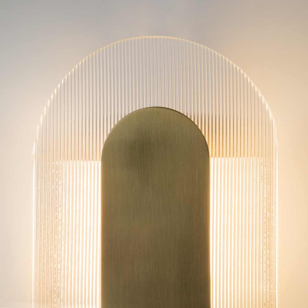 Компактная модель, выполненная из металлической арматуры цвета латунь с сатиновым эффектом. Плафон прозрачный. Источник света — LED. Цветовая температура — 3000К. Угол рассеивания — 125°. Рассеянный свет.