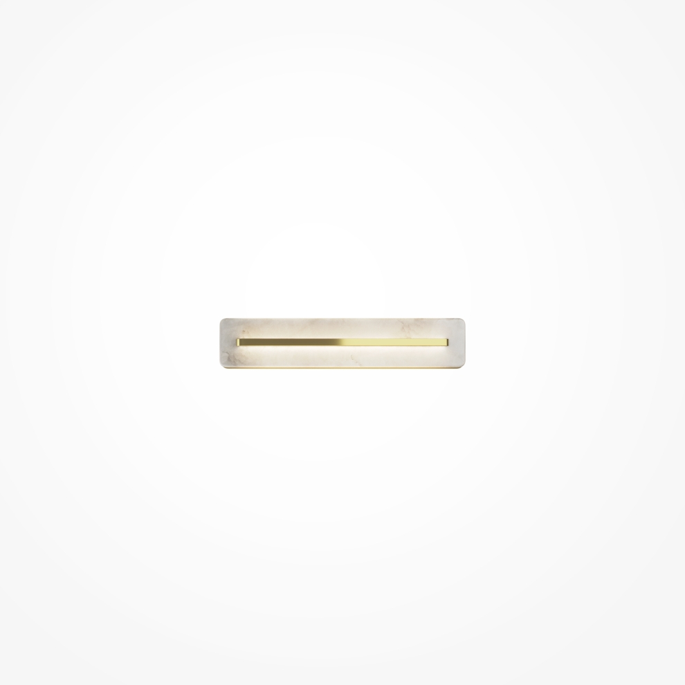 Настенные светильники с рассеивателем из алебастра. Цвет арматуры — латунь. Материал арматуры — металл. LED-источник света. Цветовая температура 3000К. Три размера: 400, 600, 800 мм. Возможность создания композиций и установки горизонтально или вертикально. Мягкий переотраженный свет. Основание из металла цвета сатинированной латуни. Модульный дизайн для создания световых инсталляций.