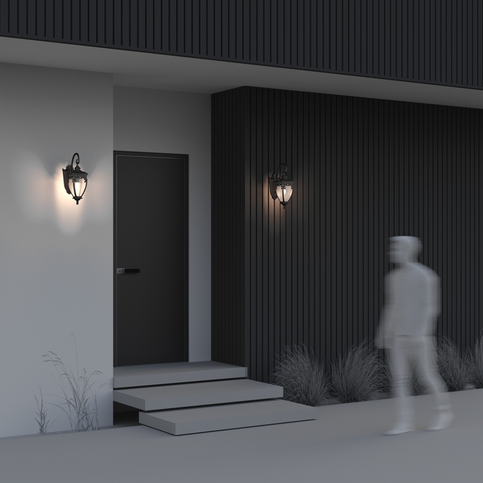 Серия представлена настенными, подвесными и напольными уличными светильниками для ламп Е27. Корпус моделей выполнен из алюминия и окрашен в два оттенка на выбор: черный с золотом или античная бронза. Светильник защищен от коррозии и перепадов температур. Декоративная технология обработки стекла PULEGOSO создает эффект пузырьков воздуха внутри плафона.