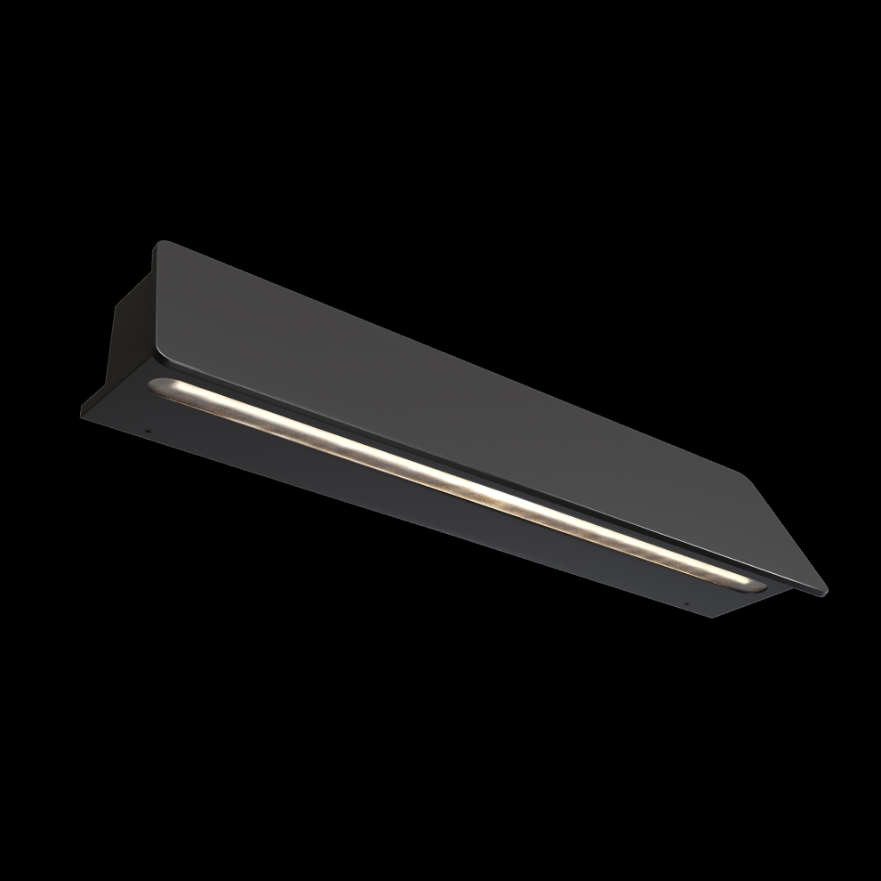 Материал корпуса - алюминий, цвет - графит. Скрытый LED- источник света - эффект невидимого света. Цветовая температура - 3000К. Подходит для подсветки проходных и входных зон. Степень защиты - IP54.