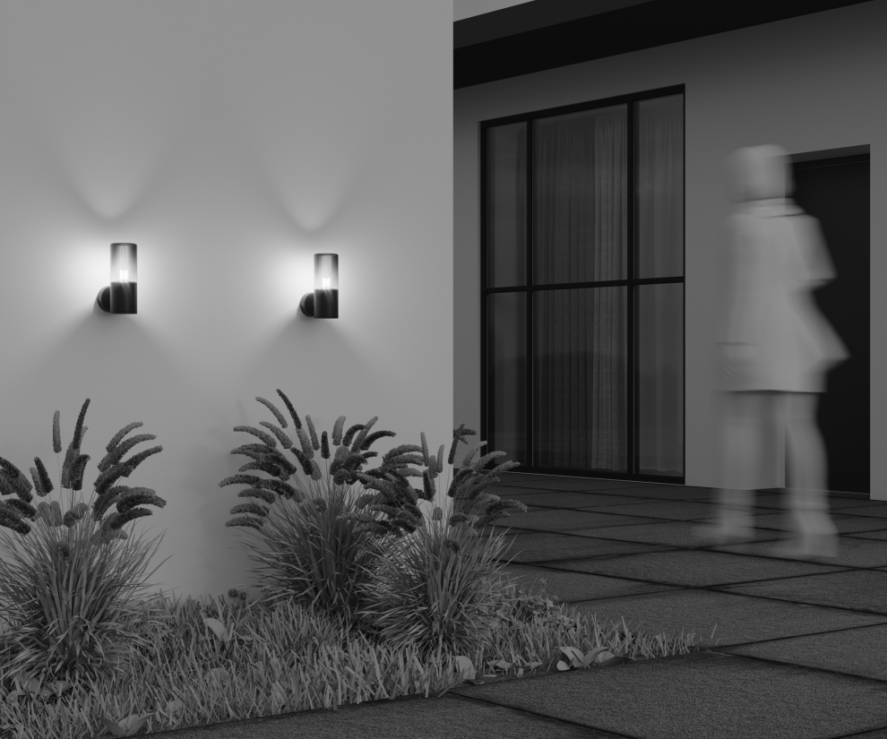 Алюминиевый корпус, цвет - графит. Световой элемент - тонированное стекло. Источник света - лампа с цоколем Е27. Универсальная серия для современных и классических экстерьеров. Защита IP54.