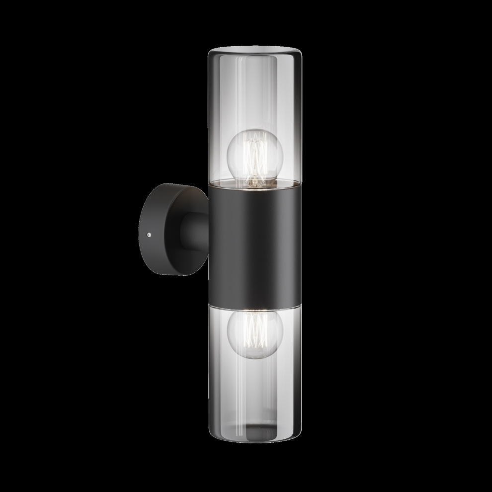 Алюминиевый корпус, цвет - графит. Световой элемент - тонированное стекло. Источник света - лампа с цоколем Е27. Универсальная серия для современных и классических экстерьеров. Защита IP54.
