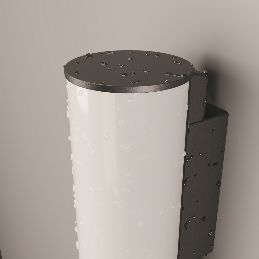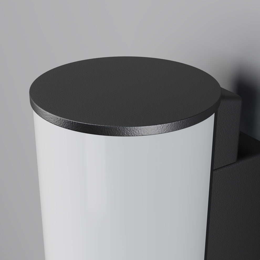 Алюминиевый корпус, цвет - графит. Округлый рассеиватель из пластика - большая площадь равномерного и насыщенного света. LED-источник света. Цветовая температура - 3000К. Степень защиты - IP54.