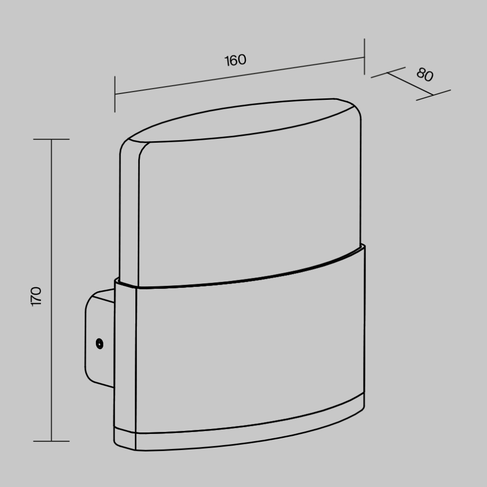 Корпус из алюминия, цвет - графит. Рассеиватель - белый матовый акрил. Равномерное мягкое рассеивание света. LED-источник света, цветовая температура - 3000К. Степень защиты - IP54.