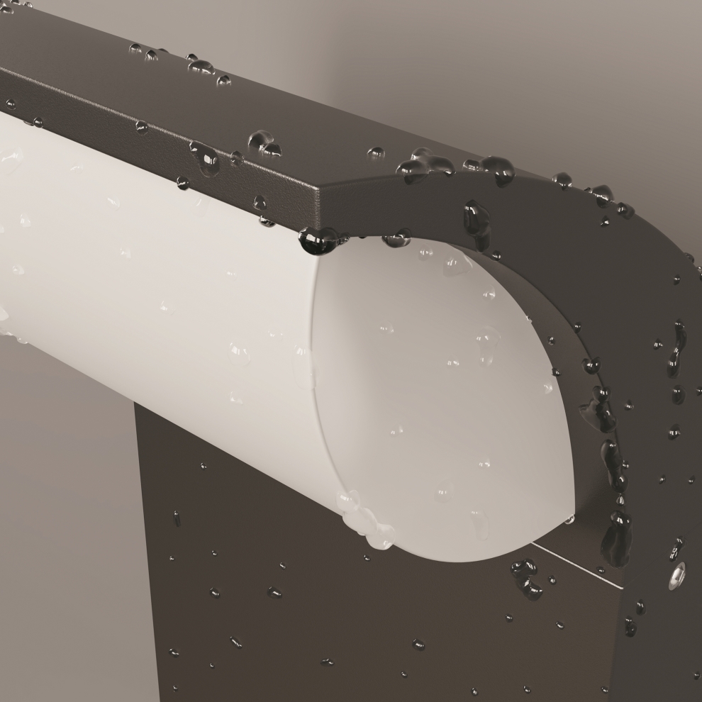 Материал корпуса - алюминий, цвет - графит. Белый матовый рассеиватель. LED-источник света. Цветовая температура 3000К. Наличие встроенного датчика движения у настенной модели. Степень защииты IP65 и IP44 настенной модели с датчиком движения.