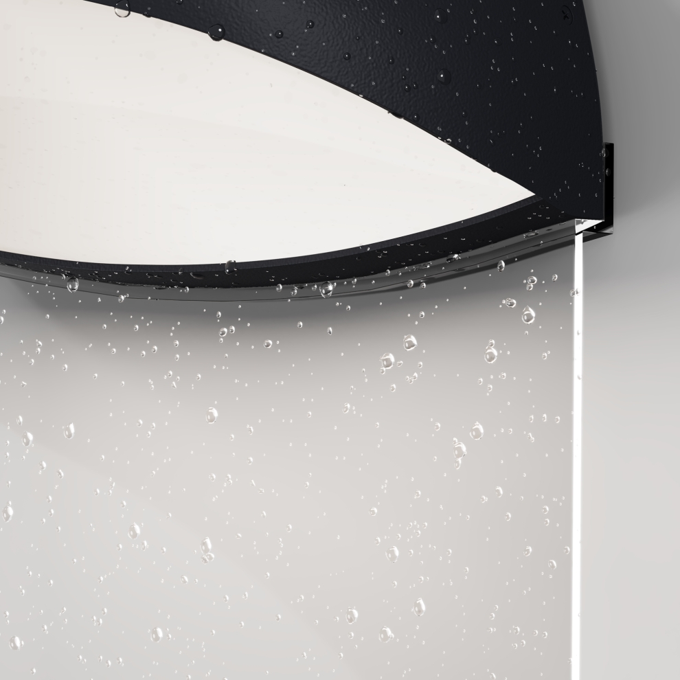 Алюминиевый корпус, цвет - графит. Рассеиватель из белого матового акрила. В комплекте - табличка из прозрачного пластика для нанесения обозначений (номера дома и др.). LED-источник света, цветовая температура 3000К. Степень защиты IP54.
