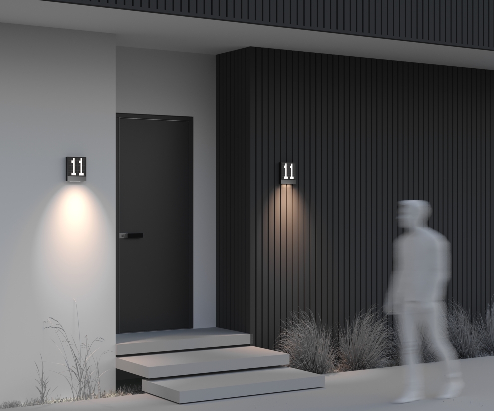Материал арматуры — алюминий и стекло. Цвет — черный. Два направления света — основное с номером дома и декоративная подсветка с направлением вниз. LED-источник света. Цветовая температура 3000К. Защита корпуса IP65 позволяет использовать в экстерьере и помещениях с повышенной. Мощность 10Вт. Настенный светильник для акцентной и декоративной подсветки входной зоны.