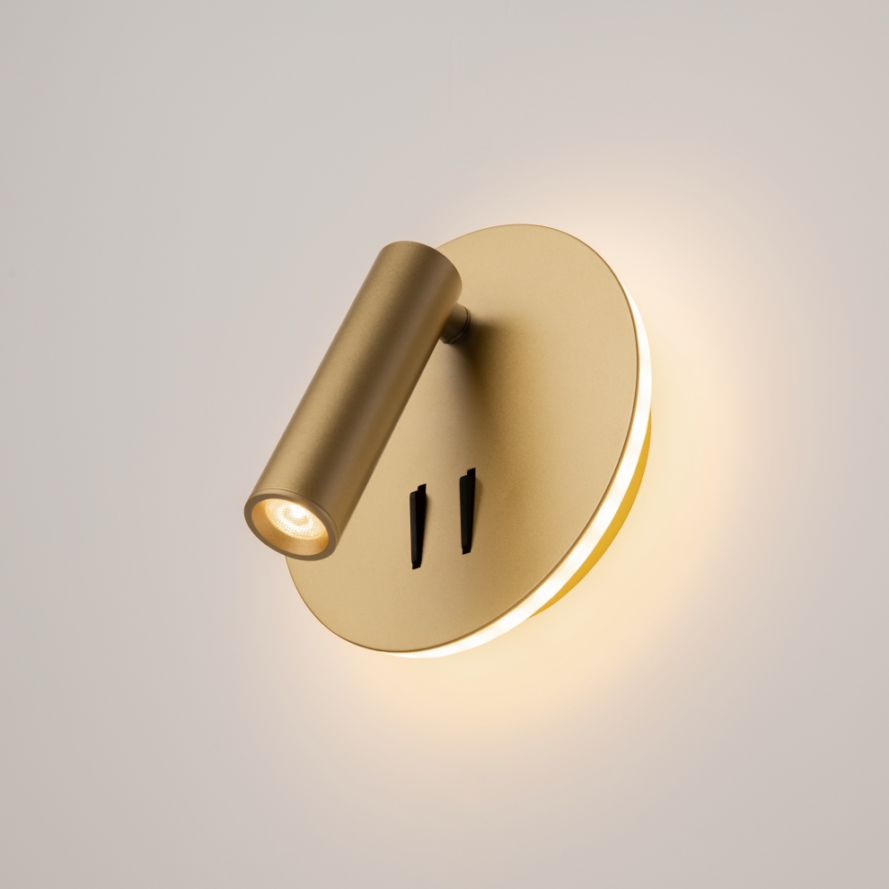 Серия компактных настенных светильников для локальной подсветки в спальнях и гостиничных номерах. Конструкцией предусмотрено два светодиодных источника света, которые можно включать совместно или раздельно. Благодаря поворотному механизму можно с легкостью регулировать направление светового потока, настраивая его под свои нужды. Мягкая подсветка создает комфортную расслабляющую атмосферу. Серия представлена моделями с круглым и квадратным корпусом в черном, белом цвете, а также в трендовом оттенке матового золота.